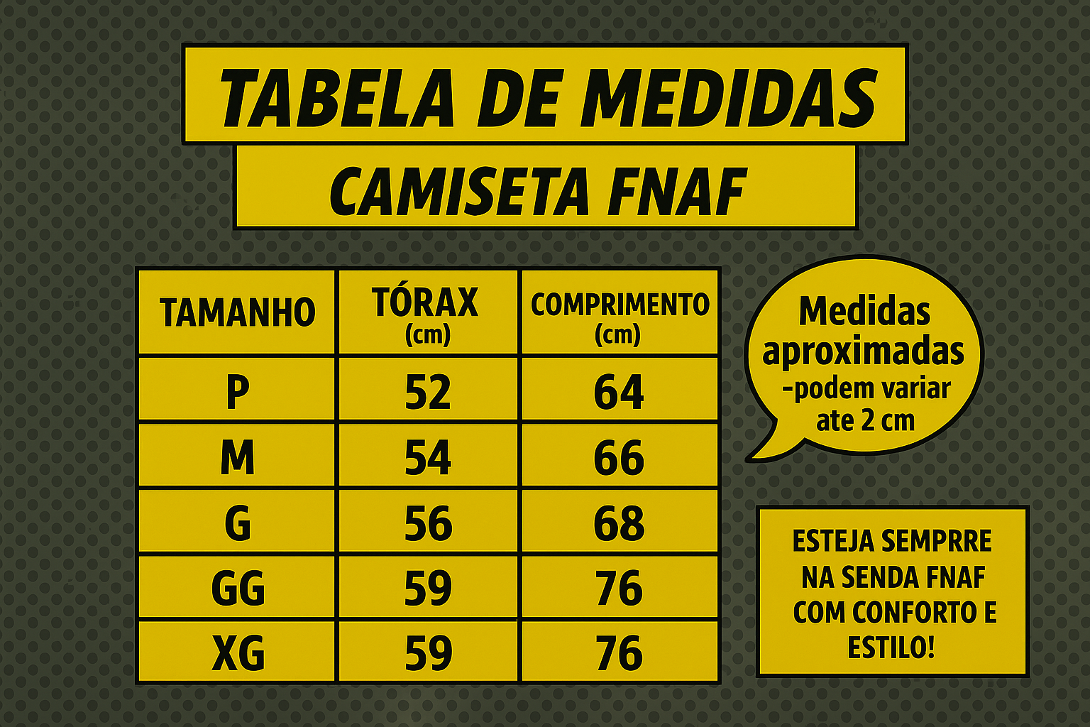 Entre de vez no clima sombrio e misterioso de Five Nights at Freddy’s com o nosso Combo Exclusivo de Camisetas FNAF!