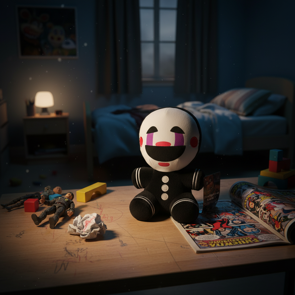 Se você é fã do universo FNAF, essa pelúcia da Marionette é aquele item obrigatório que não pode faltar na sua prateleira, setup ou coleção temática. Perfeita para quem vive o terror dos animatrônicos… mas quer uma versão mais fofa (e misteriosa 👁️).