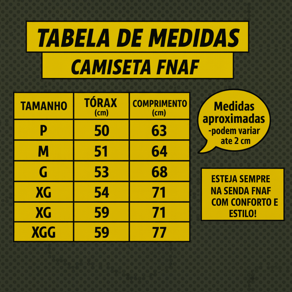 Perfeita para o dia a dia, eventos geek, fotos, cinema e para mostrar que você realmente faz parte do fandom FNAF.